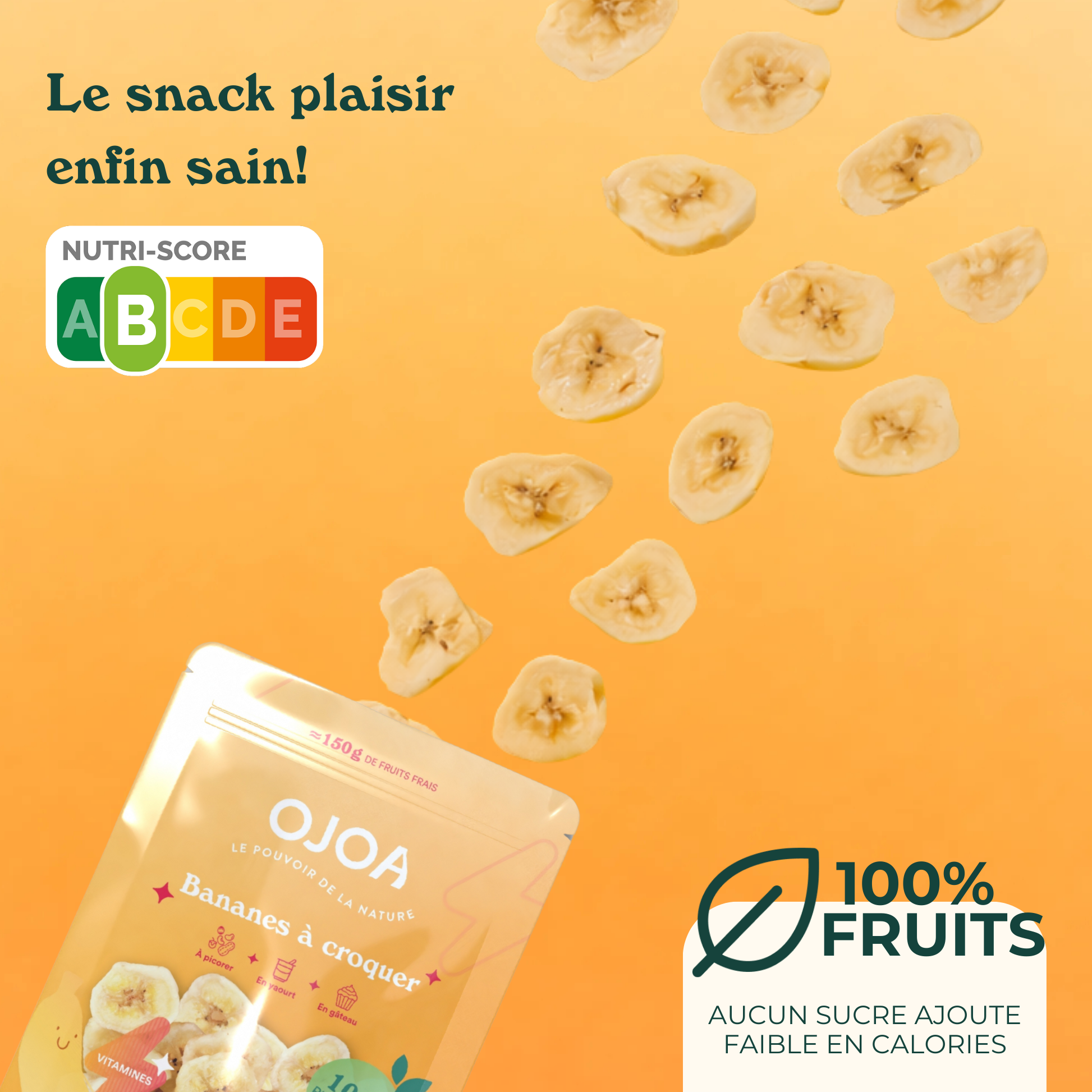 Crunchy bananas for a vitamin break, positive and natural.