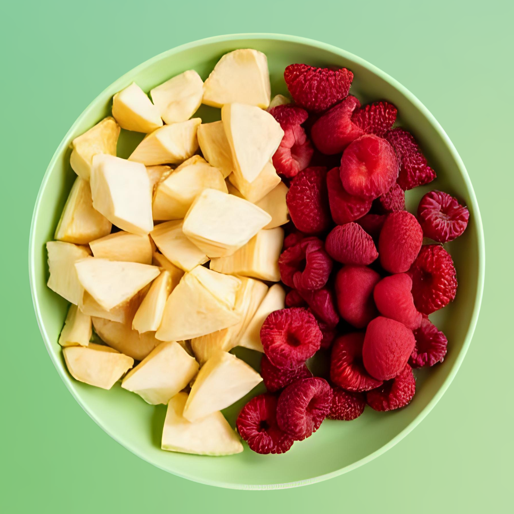 This colourful blend combines the tang of raspberry, the smooth sweetness of banana, and the crisp bite of apple — all gently cold dried to preserve nutrients and taste.