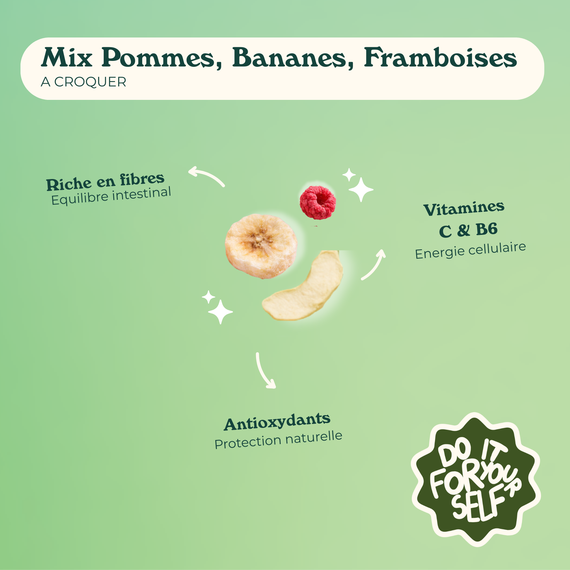 Crunchy Fruit Mix: Apple • Banana • Raspberry